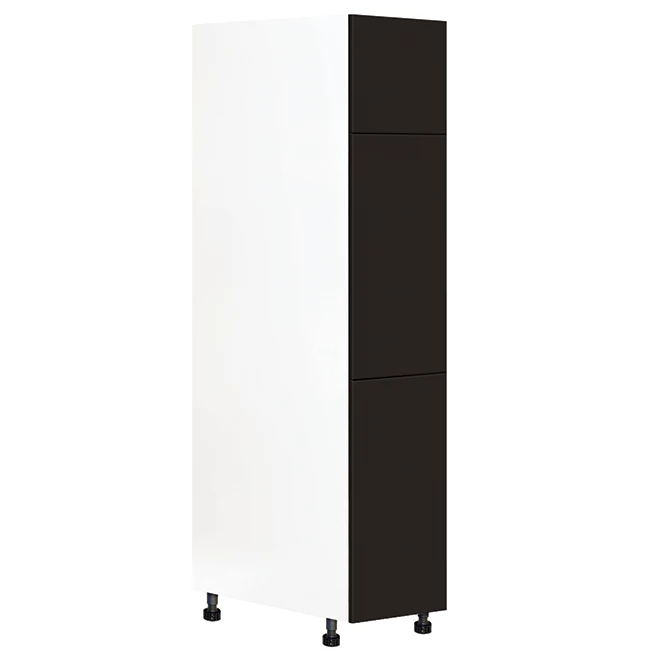 Enhance your kitchen’s look with this sleek Eklipse pantry cabinet by Ebsu. This module has a width of 30 1/4 in., and its doors are made of high quality black polymer with a satin finish. This unit also features adjustable hinges, an integrated soft-close function, as well as adjustable legs to suit your kitchen’s needs. This factory-built item is ready to be installed and can be paired with the other units from the Eklipse collection. This product is backed by a 1-year warranty on manufacturing defects.
