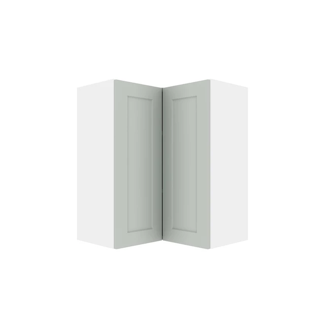 Factory-assembled and ready to install, this Eklipse by EBSU 24-inch wall corner cabinet features 2 grey polymer shaker-style doors that close softly. It has a superior 3/4-inch melamine construction and is frameless, allowing for more storage space behind the angelite-coloured doors. Eklipse cabinets are manufactured in Canada.