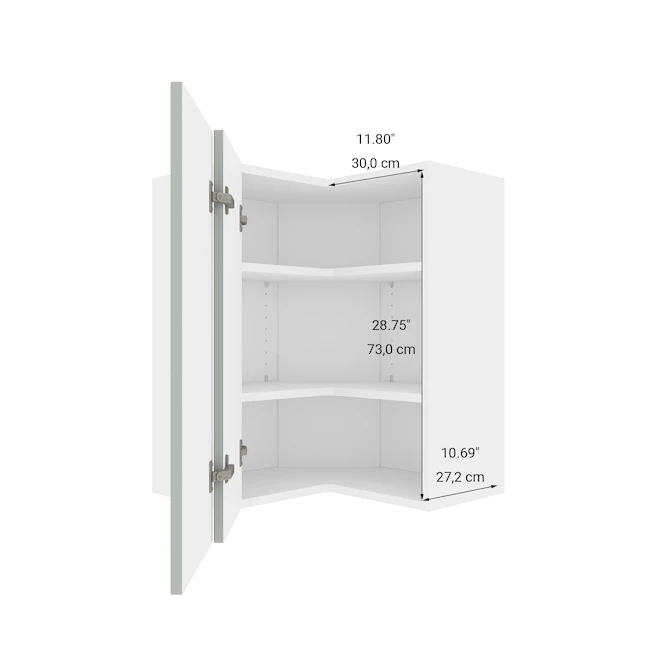Model Description :Eklipse Wall Corner Cabinet 24.25-In W x 30.25-In H x 24.25-In D 1 Door Angelite – Grey