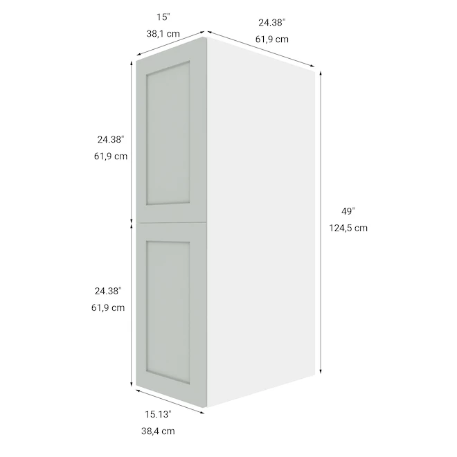 This Eklipse by EBSU 15-inch top pantry cabinet features 2 shaker-style polymer doors in a grey colour. This cabinet is pre-assembled to facilitate installation, and its frameless design provides more storage space. The frame is made of melamine, and the door has a sturdy thermofoil finish. Eklipse cabinets are made in Canada.