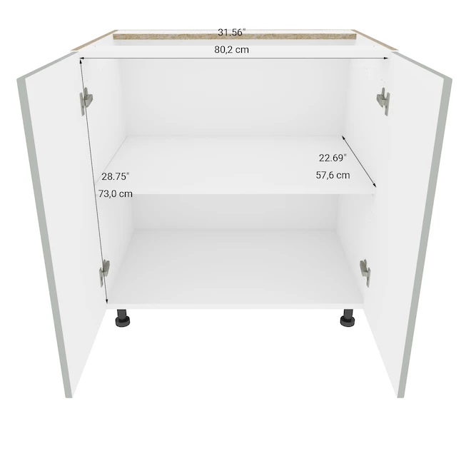 From the Angelite collection, this Eklipse by EBSU 33-inch base cabinet features 2 soft-close grey polymer doors and includes adjustable legs. Already assembled and ready to install, the cabinet is frameless which offers more storage space. It can be paired with other units from Eklipse to complete your kitchen. This product is made in Canada and includes a 1-year warranty.