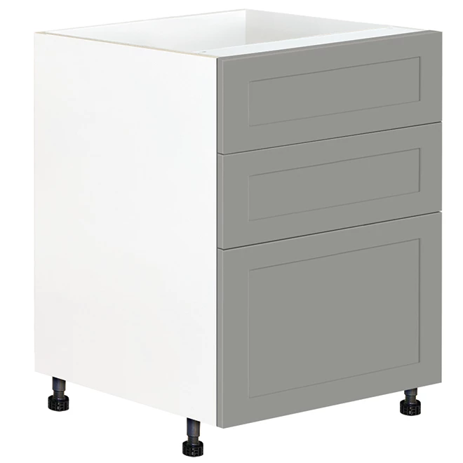 Keep your kitchen organized with this Eklipse base cabinet. Its 3 drawers are a great way to ensure everything in your kitchen will have its own dedicated space. It comes in a beautiful shade of grey you’ll love. The unit has adjustable legs and comes ready to be installed so you won’t have to spend hours building it. It’s backed by a 1-year warranty against manufacturing defects.
