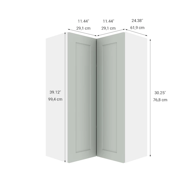 Model Description :Eklipse Wall Corner Tall Cabinet 24.25-In W x 39.25-In H x 24.25-In D 1 Door Angelite – Grey