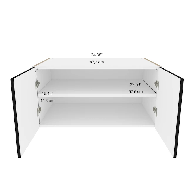 From the modern-style Onyx collection the small cabinet Eklipse from EBSU is designed for an installation above the refrigerator. The doors coated with durable thermoplastic are equipped with high-quality adjustable soft-close hinges. The module features a frameless conception which optimizes storage. Made of particle board with a melamine finish the pre-assembled unit is ready for an easy and quick installation. This product is made in Canada and backed by a limited lifetime warranty.