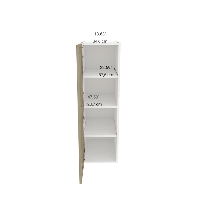 Model Description :Eklipse Top Pantry Cabinet 15.13-In W x 49.00-In H x 24.38-In D 2 Doors Coral – Natural Oak