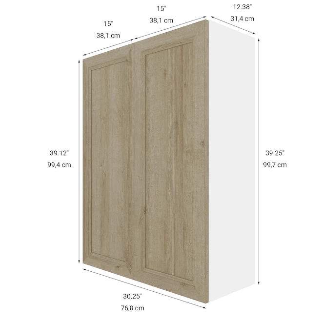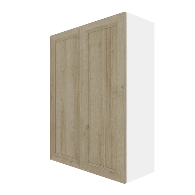 - MDF shaker style door front in a natural oak polyester woodgrain finish with 3/4-In melamine panel construction