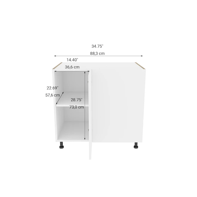 Model Description :Eklipse Base Hidden Corner Cabinet 36.25-In W x 34.75-In H x 36.25-In D 1 Door Moonstone – White