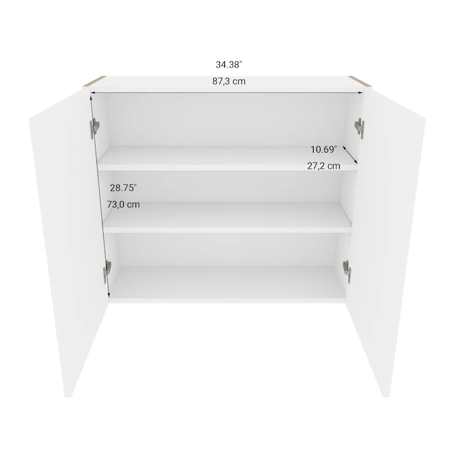 Eklipse cabinets are already assembled and ready to install, for an easy and quick solution. This Eklipse by EBSU Moonstone wall cabinet is equipped with high-quality soft-close hinges and is frameless which provides more storage space. This 3/4-inch white melamine cabinet is manufactured in Canada.