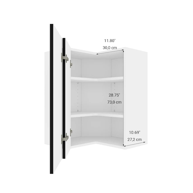 This Eklipse by EBSU 24-inch ready-to-install corner wall cabinet features 2 soft-close flat polymer doors. This cabinet is frameless for more storage space and it has a superior 3/4-inch white melamine construction. This Canadian-built cabinet can be paired with other units from Eklipse to complete your kitchen and includes a 1-year warranty against manufacturing defects.