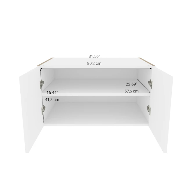 From the transitional-style Perle collection the small cabinet Eklipse from EBSU is designed for an installation above the refrigerator. The doors coated with durable thermoplastic are equipped with high-quality adjustable soft-close hinges. The module features a frameless conception which optimizes storage. Made of particle board with a melamine finish the pre-assembled unit is ready for an easy and quick installation. This product is made in Canada and backed by a limited lifetime warranty.