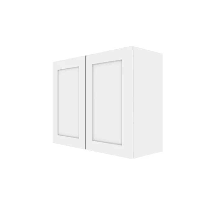 - MDF shaker style door front in white polymer satin finish with 3/4-In melamine panel construction