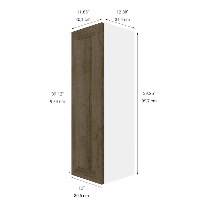 Model Description :Eklipse Wall Tall Cabinet 12.00-In W x 39.25-In H x 12.38-In D 1 Door Ruby – Aged Oak