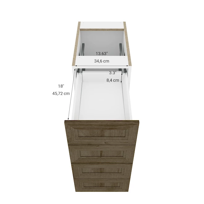 Model Description :Eklipse Base Cabinet 15.13-In W x 34.75-In H x 24.38-In D 4 Drawers Ruby – Aged Oak