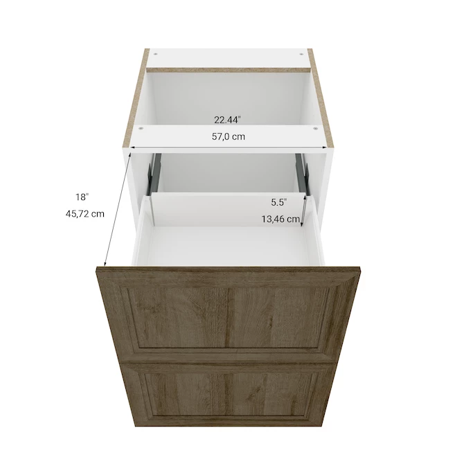 - MDF shaker style drawer front in a aged oak polyester woodgrain finish with 3/4-In melamine panel construction