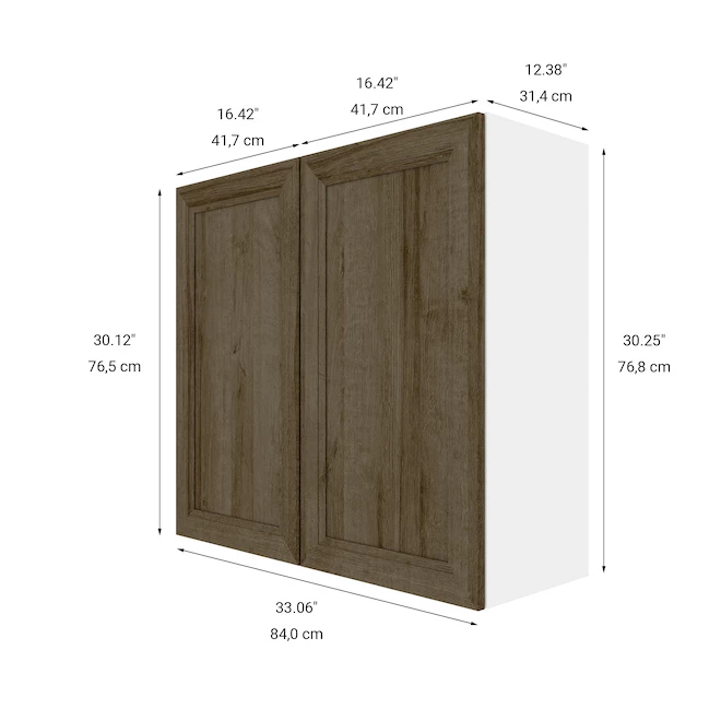 Model Description :Eklipse Wall Cabinet 33.06-In W x 30.25-In H x 12.39-In D 2 Doors Ruby – Aged Oak