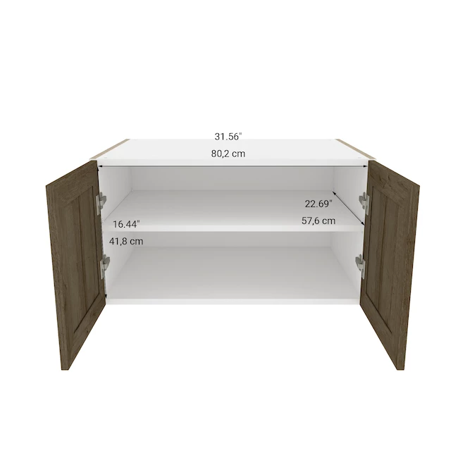 From the rustic-style Ruby collection the small cabinet Eklipse from EBSU is designed for an installation above the refrigerator. The doors are equipped with high-quality adjustable soft-close hinges. The module features a frameless conception which optimizes storage. Made of particle board with a melamine finish the pre-assembled unit is ready for an easy and quick installation. This product is made in Canada and backed by a limited lifetime warranty.
