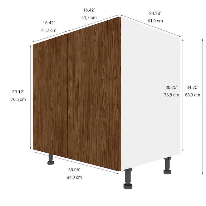 Model Description :Eklipse Base Cabinet 33.06-In W x 34.75-In H x 24.38-In D 2 Doors Saphir – Walnut