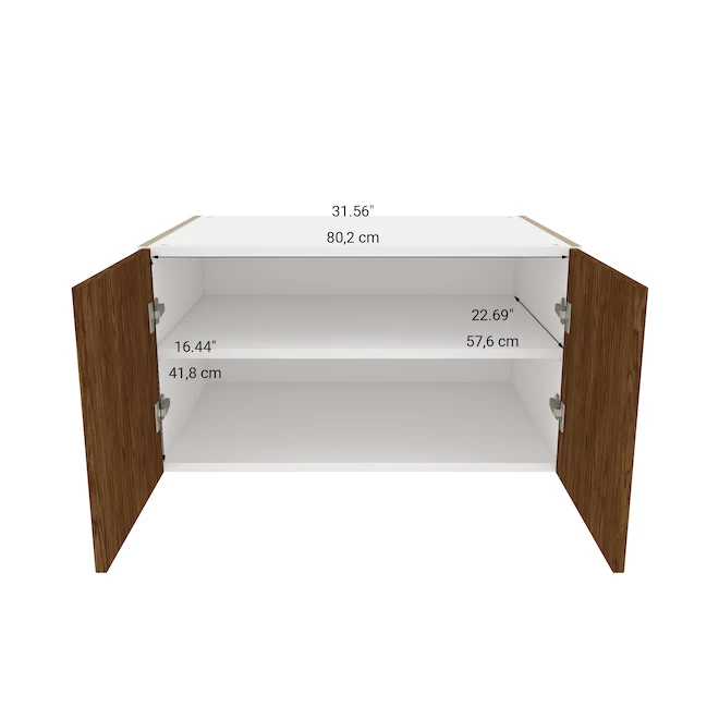 Model Description :Eklipse Wall Small Cabinet 33.06-In W x 17.694-In H x 24.38-In D 2 Doors Saphir – Walnut
