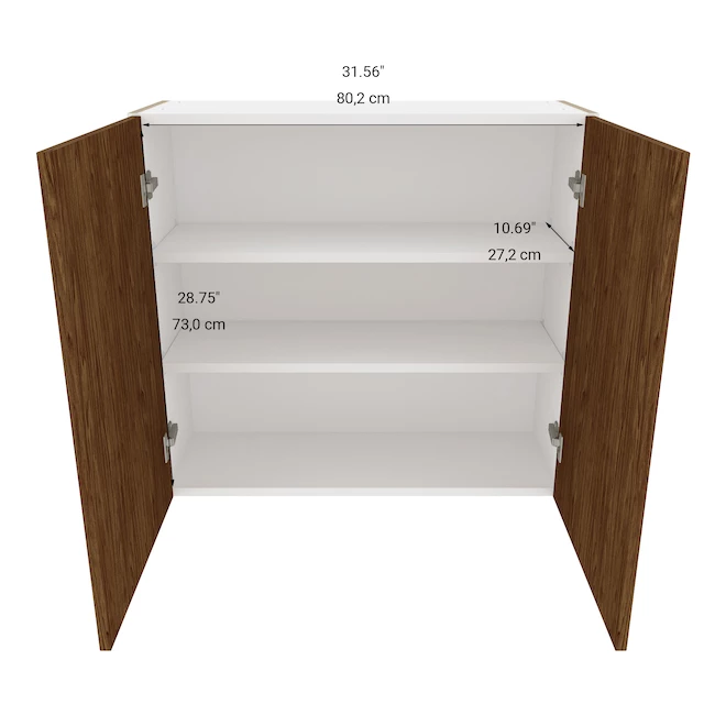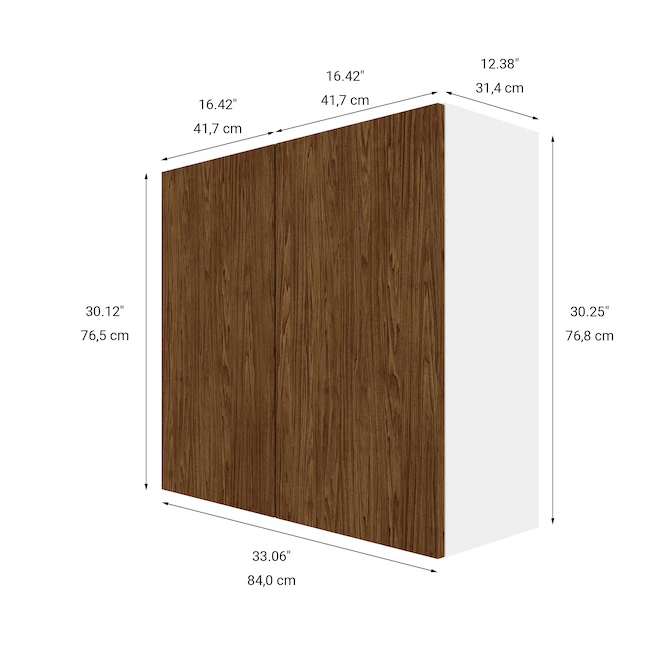 Model Description :Eklipse Wall Cabinet 33.06-In W x 30.25-In H x 12.39-In D 2 Doors Saphir – Walnut