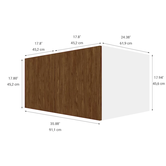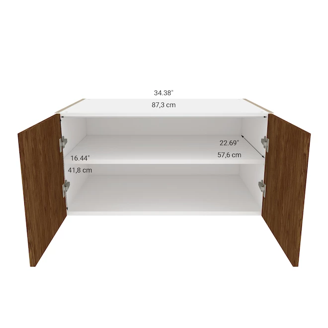 - Melamine door front in walnut woodgrain finish with 3/4-In melamine panel construction