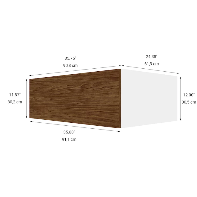 Create a stylish space with Eklipse kitchen cabinets by EBSU. This 36-inch horizontal wall cabinet from the Saphir collection features a flat slab style door with a soft-close mechanism and a woodgrain colour. It has a superior 3/4-inch melamine construction and is ready for installation. Finish off this cabinet by adding beautiful door handles (sold separately). This product comes with a 1-year warranty on manufacturing defects.