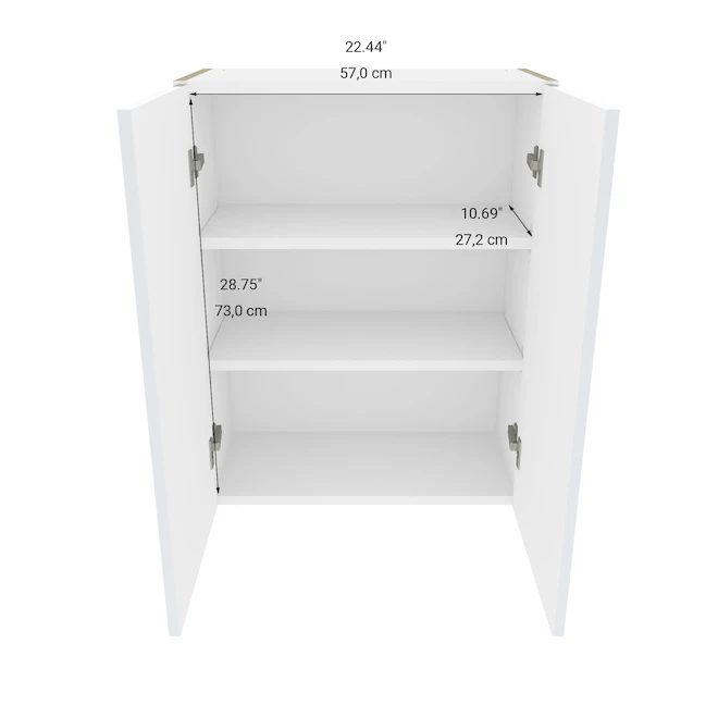 Already assembled and ready to install, Eklipse by EBSU cabinets are an easy and quick solution for creating a well-organized kitchen storage system. The 3/4-in white panel is a minimalist take on modern aesthetics, and frameless cabinet design adds storage space. Eklipse Topaz cabinets are manufactured in Canada and feature high-end hardware as well as doors with soft-close mechanism. This 2-door wall cabinet comes in a 24-in width and a 12-in depth.