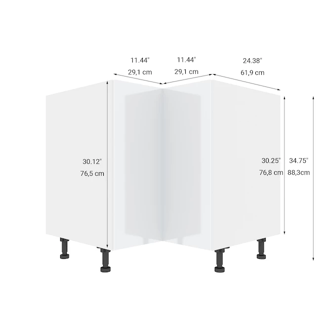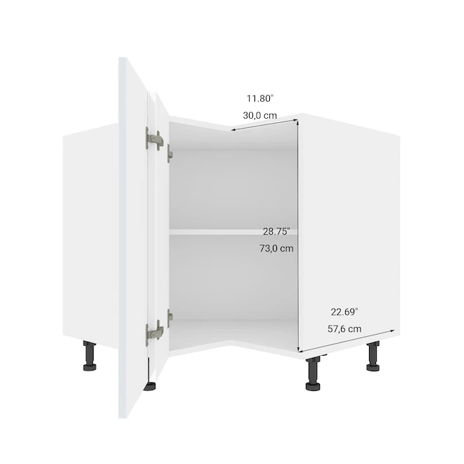 Model Description :Eklipse Base Corner Cabinet 35.88-In W x 34.75-In H x 36.25-In D 1 Door Topaz – Glossy White