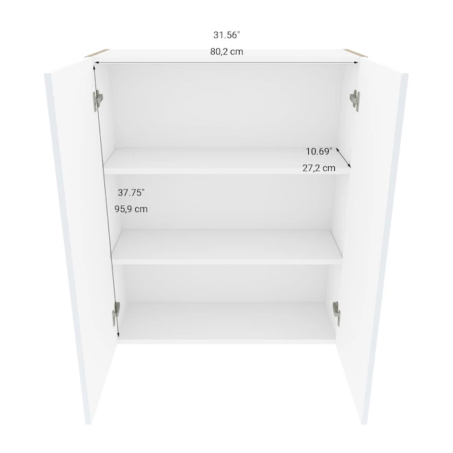 From the modern Topaz collection, the wide wall cabinet Eklipse from EBSU comports 2 doors equipped high-quality soft-close hinges and 3 adjustable shelves. The module has a frameless design that optimizes storage. Pre-assembled, the unit made of particle board with a melamine finish is ready for an easy and quick installation. This product is made in Canada and backed by a limited lifetime warranty.