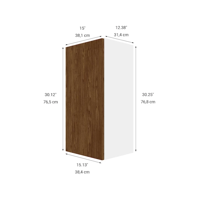 Complete your kitchen with this Saphir wall cabinet from Eklipse. It measures 15 1/8 in. wide, and is made with high-quality materials. Its door features textured melamine looks and feels like real wood. The cabinet has adjustable hinges and an integrated soft-close function. Factory-built, the unit is ready to be installed. It is covered by a 1-year warranty against manufacturing defects.